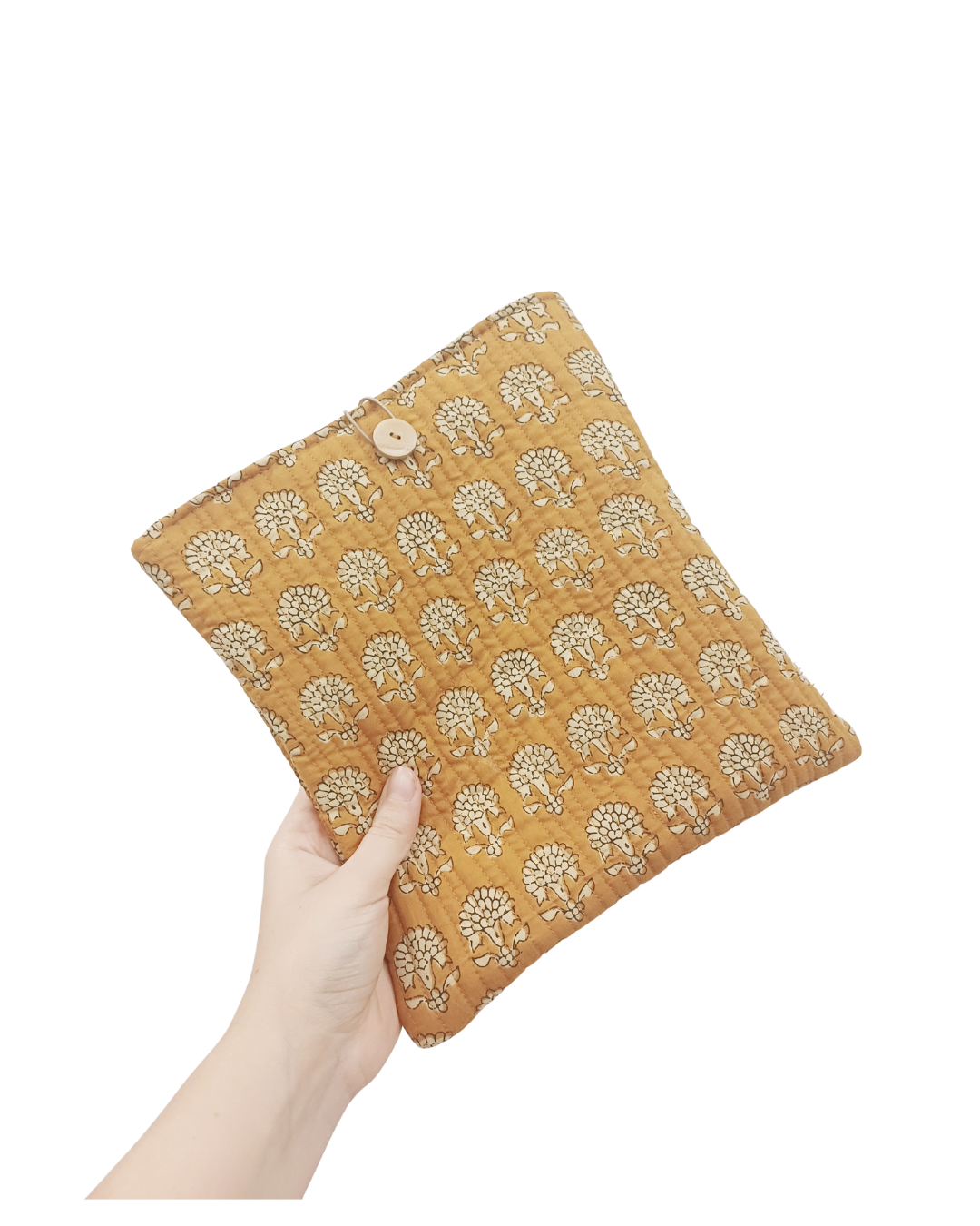 Funda para libros o tablet. De algodón con forro acolchado en guata.